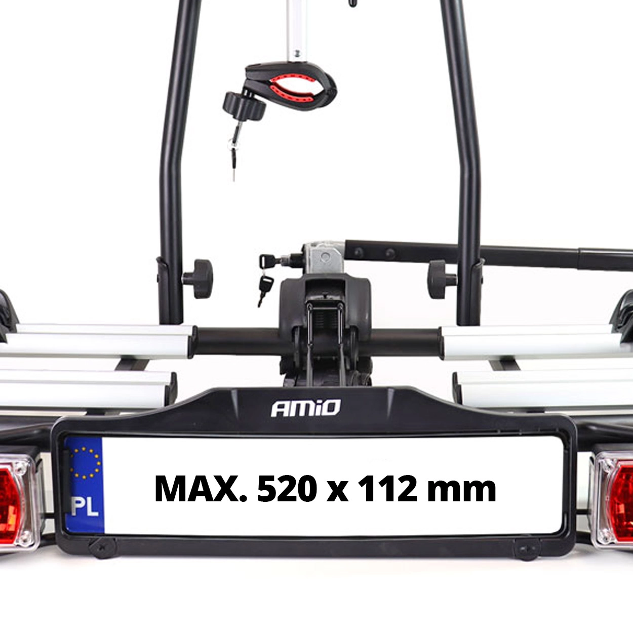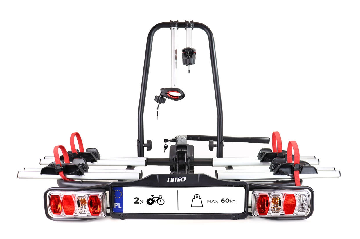 Sulankstomas AMiO elektrinių dviračių laikiklis, kuris tvirtinasi ant kablio ir yra skirtas vežti vieną arba du dviračius. Šis dviračių laikiklis yra lengvai montuojamas, praktiškas ir gali vežti, vieną arba du dviračius, kai vieno dviračio svoris yra iki 30 KG.