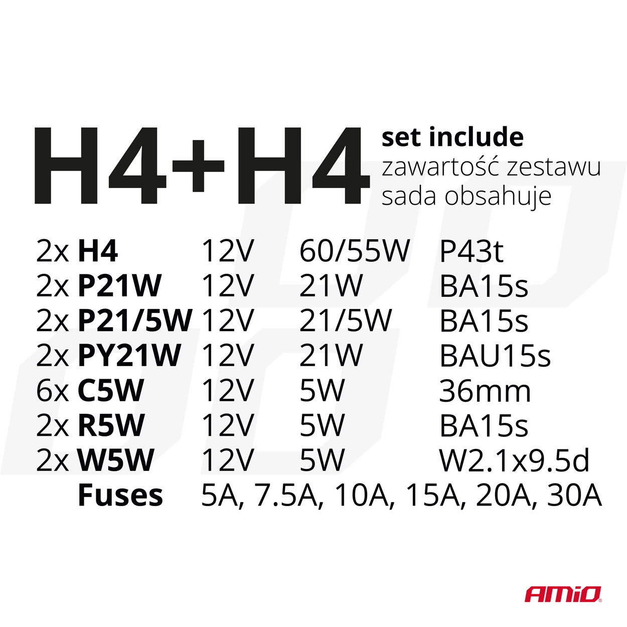 30 dalių atsarginių lempučių ir saugiklių rinkinys, būtinas kiekviename automobilyje. Tai populiariausios lemputės ir saugikliai, naudojami automobiliuose. Visa tai įdėta į tvirtą, praktišką ir lengvai transportuojamą dežutę.