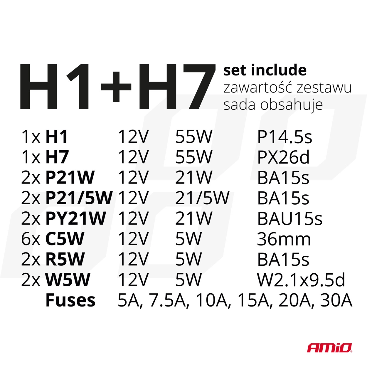 30 dalių atsarginių lempučių ir saugiklių rinkinys, būtinas kiekviename automobilyje. Tai populiariausios lemputės ir saugikliai, naudojami automobiliuose. Visa tai įdėta į tvirtą, praktišką ir lengvai transportuojamą dežutę.