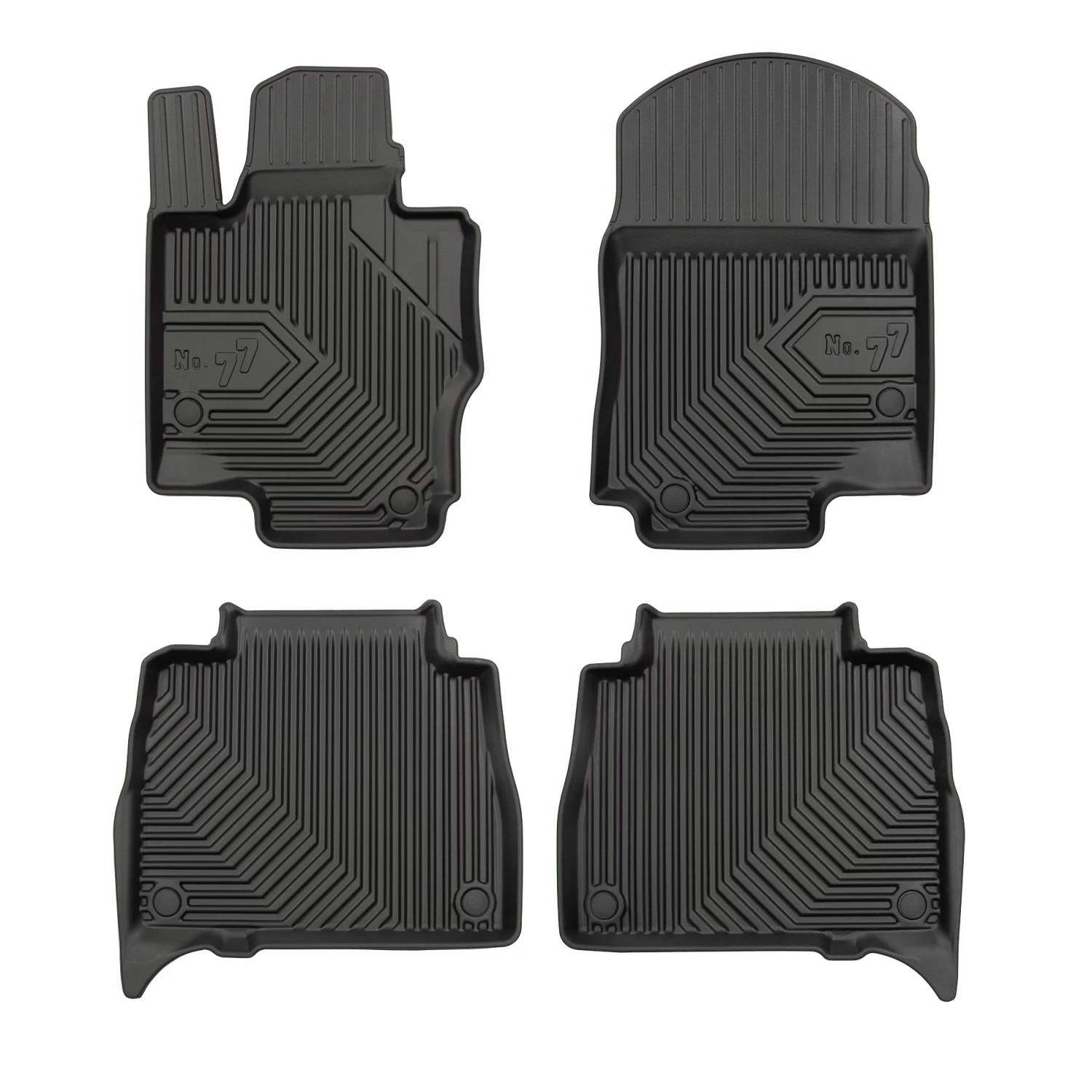 Aukščiausią kokybę ir atsparumą dilimui – naujoviškos gumos, įskaitant elastomerą (TPE), naudojimas užtikrina aukščiausią patvarumą ir atsparumą dilimui rinkoje. Automobilių kilimėliai Nr. 77 išlaiko visišką lankstumą net esant žemai temperatūrai.