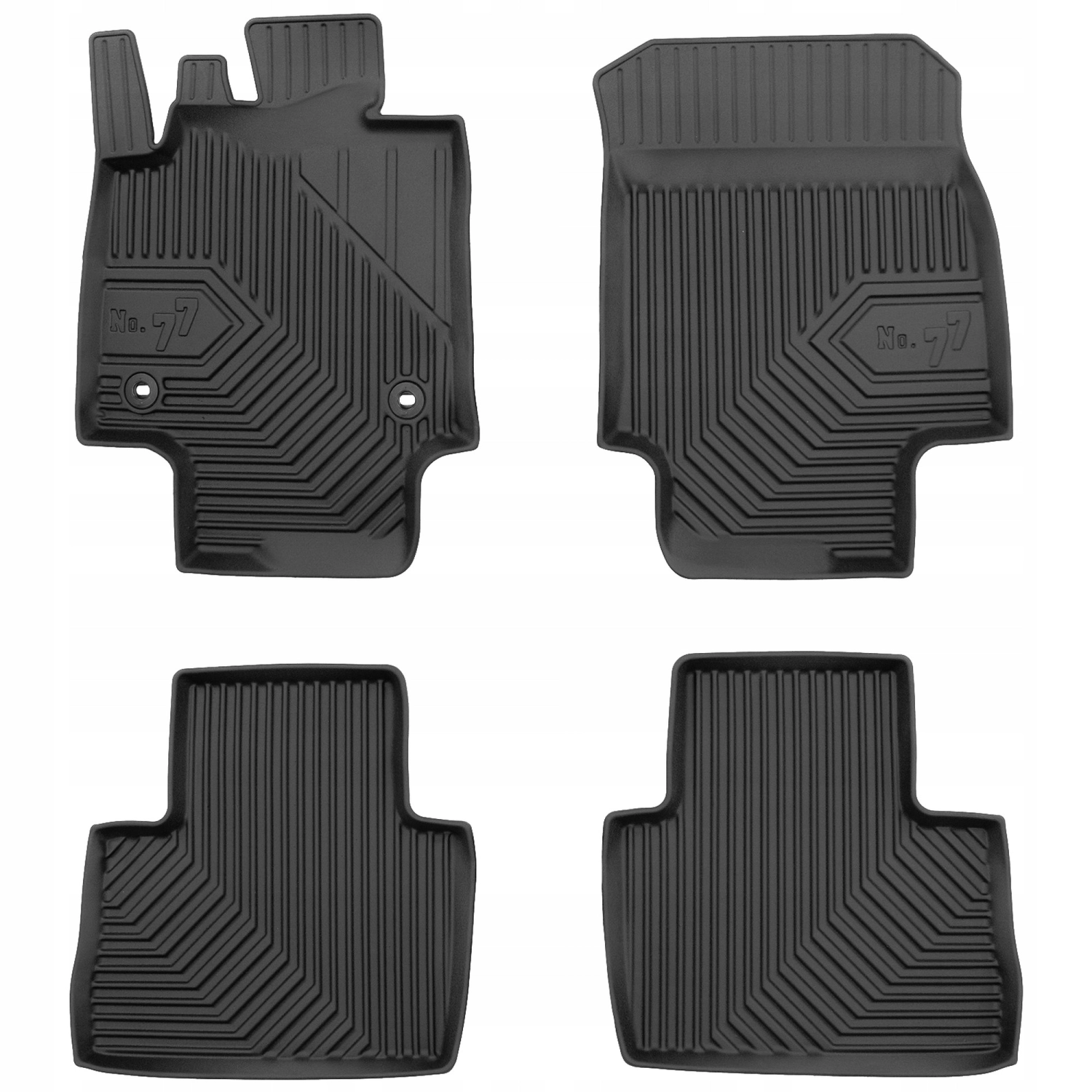 Aukščiausią kokybę ir atsparumą dilimui – naujoviškos gumos, įskaitant elastomerą (TPE), naudojimas užtikrina aukščiausią patvarumą ir atsparumą dilimui rinkoje. Automobilių kilimėliai Nr. 77 išlaiko visišką lankstumą net esant žemai temperatūrai.