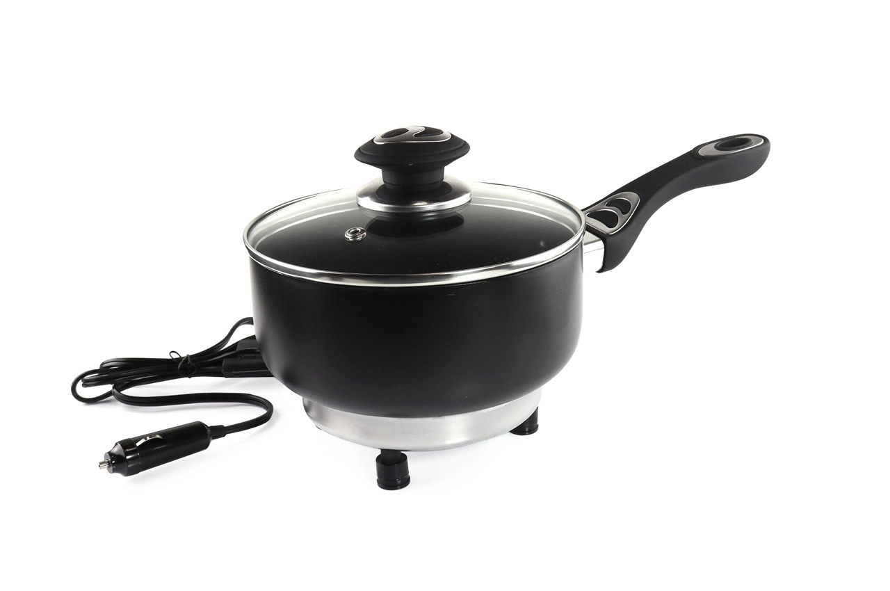 Elektrinis puodas, maitinamas automobilio cigarečių žiebtuvėliu (nuolatinės srovės maitinimas). Jis puikiai veikia sunkvežimiuose, nameliuose ant ratų, valtyse ir kt. Labai patogus dydis - 180mm skersmuo x 80mm gylis.