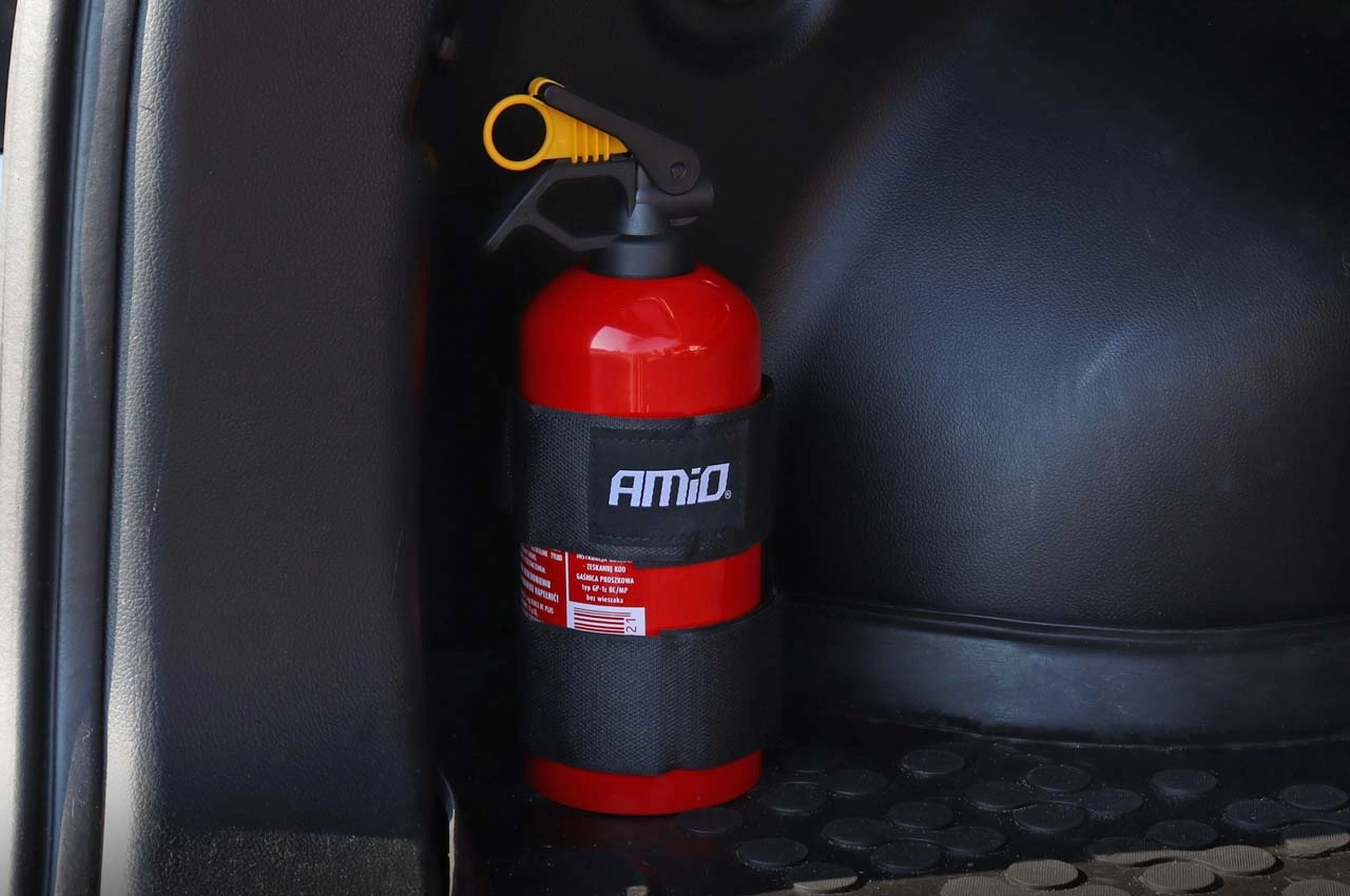 Amio laikiklis gesintuvui su velcro lipduku. Velcro lipdukas leis pritvirtiniti gesintuvo laikiklį prie bagažinės be jokių pastangų.