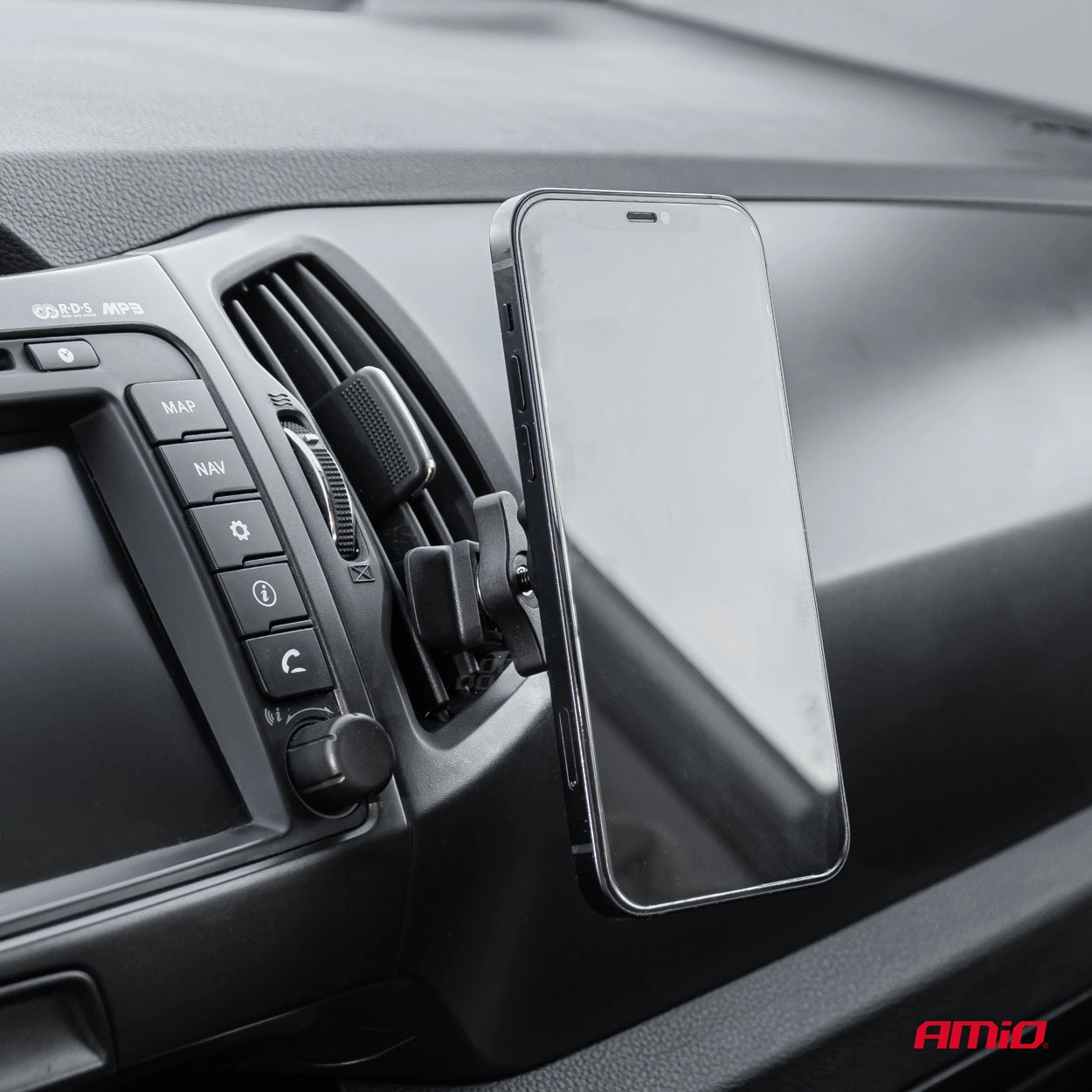 Amio magnetinis laikiklis modernaus dizaino. Stabilus ir paprastas naudoti. Magnetas netrukdo telefono veikimui. Tai neturi neigiamos įtakos GSM signalui ar GPS veikimui.