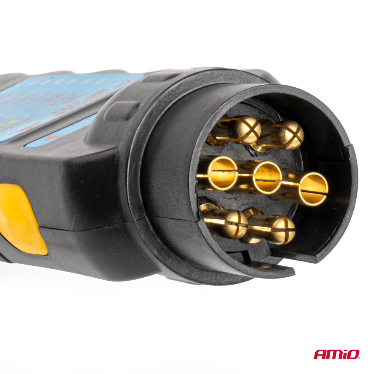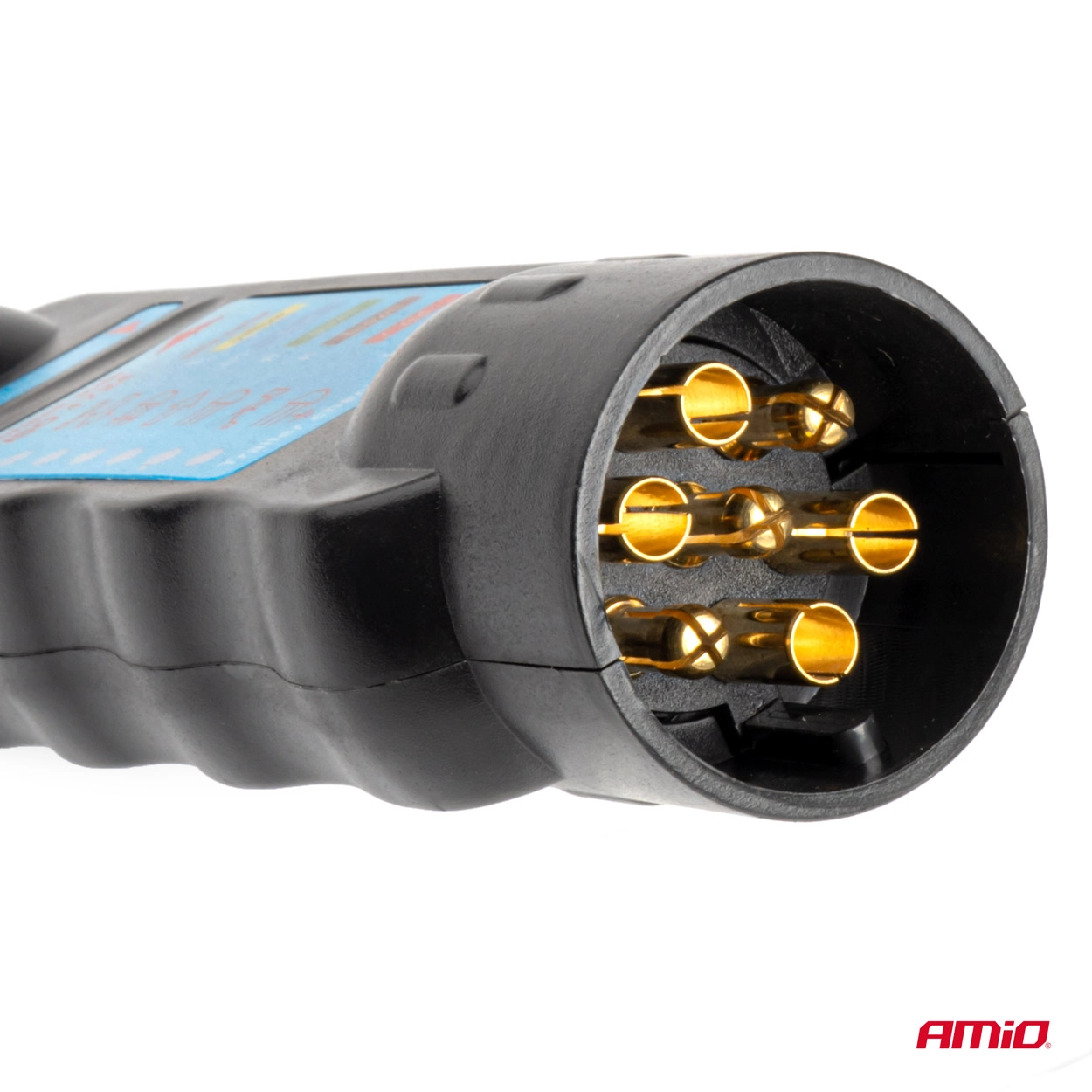 Belaidžio lizdo testeris leidžia lengvai nustatyti problemas, susijusias su netinkamu, netinkamu priekabos apšvietimo veikimu. Paspaudus testavimo mygtuką, testeris analizuoja 6 diagnostinių lizdų padėtis. Greitai ir be pastangų nustatykite apšvietimo problemas. Ypač rekomenduojame priekabų savininkus, priekabų nuomos punktus, automobilių dirbtuves, elektrikus ir kt. Testeris maitinamas 9V baterija (nepridedama).