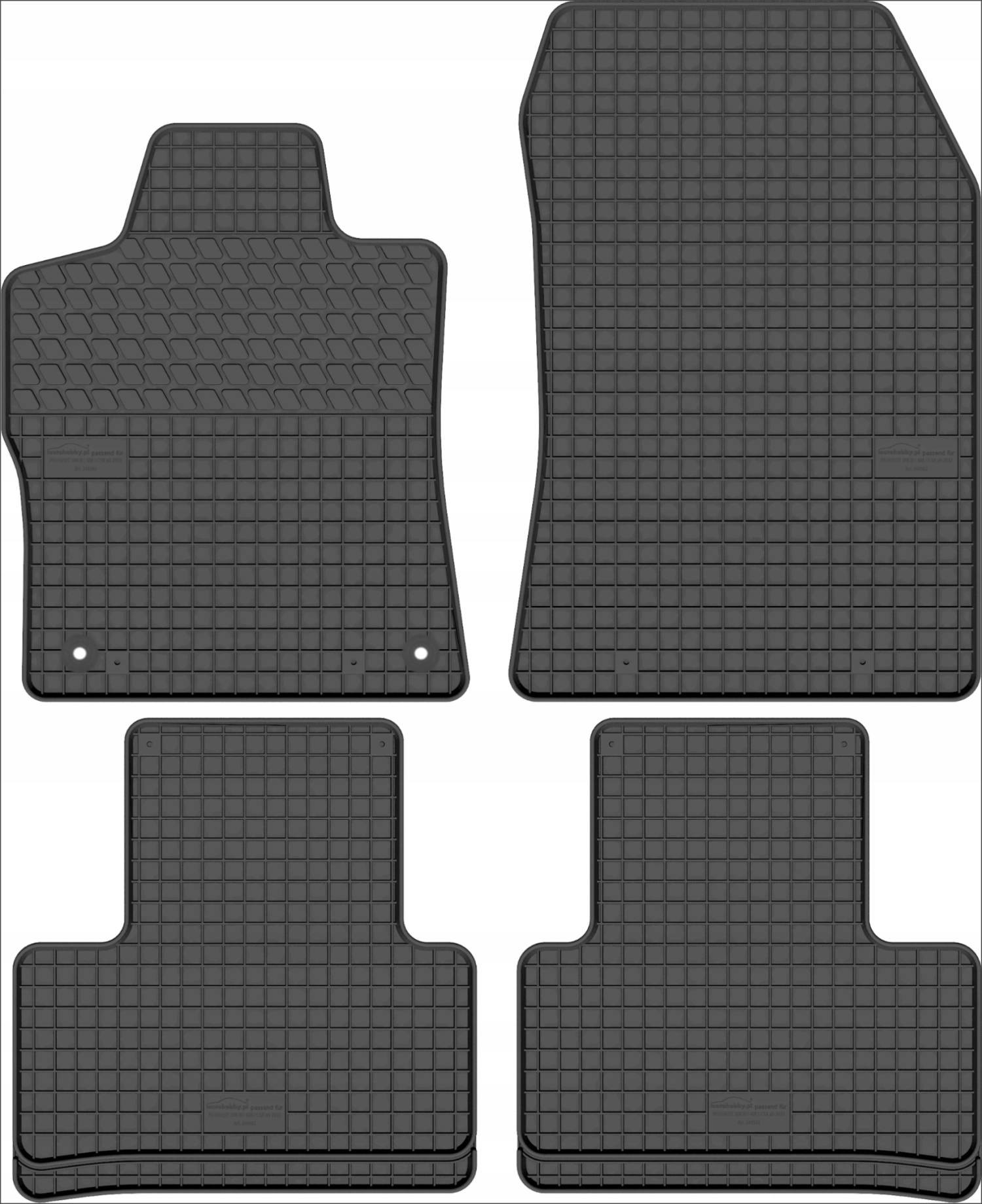 MOTOHOBBY kilimėliai yra pagaminti iš aukštos kokybės gumos mišinio, kurio dėka jie neskleidžia gumos kvapo ir yra atsparūs trinčiai. Kilimėliai pagaminti specialiai pagal automobilio modelį, todėl dera ant Jūsų automobilio grindų. Iš apačios kilimėliai padengti papildomais išsikišimais (spygliukais), kurie efektyviai apsaugo kilimėlius nuo slydimo, o tai ženkliai pagerina vairavimo komfortą. Vairuotojo kilimėlis turi papildomą sutvirtinimą, kuris apsaugo kilimėlį nuo trinties po kulnais ant pedalo linijos.