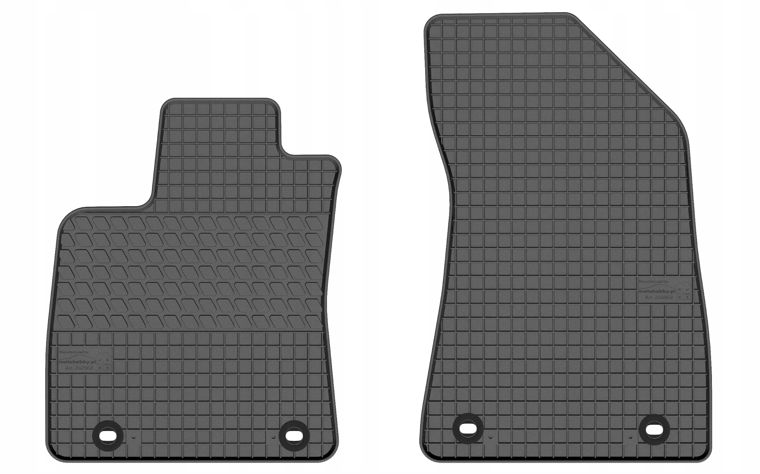 MOTOHOBBY kilimėliai yra pagaminti iš aukštos kokybės gumos mišinio, kurio dėka jie neskleidžia gumos kvapo ir yra atsparūs trinčiai. Kilimėliai pagaminti specialiai pagal automobilio modelį, todėl dera ant Jūsų automobilio grindų. Iš apačios kilimėliai padengti papildomais išsikišimais (spygliukais), kurie efektyviai apsaugo kilimėlius nuo slydimo, o tai ženkliai pagerina vairavimo komfortą. Vairuotojo kilimėlis turi papildomą sutvirtinimą, kuris apsaugo kilimėlį nuo trinties po kulnais ant pedalo linijos.