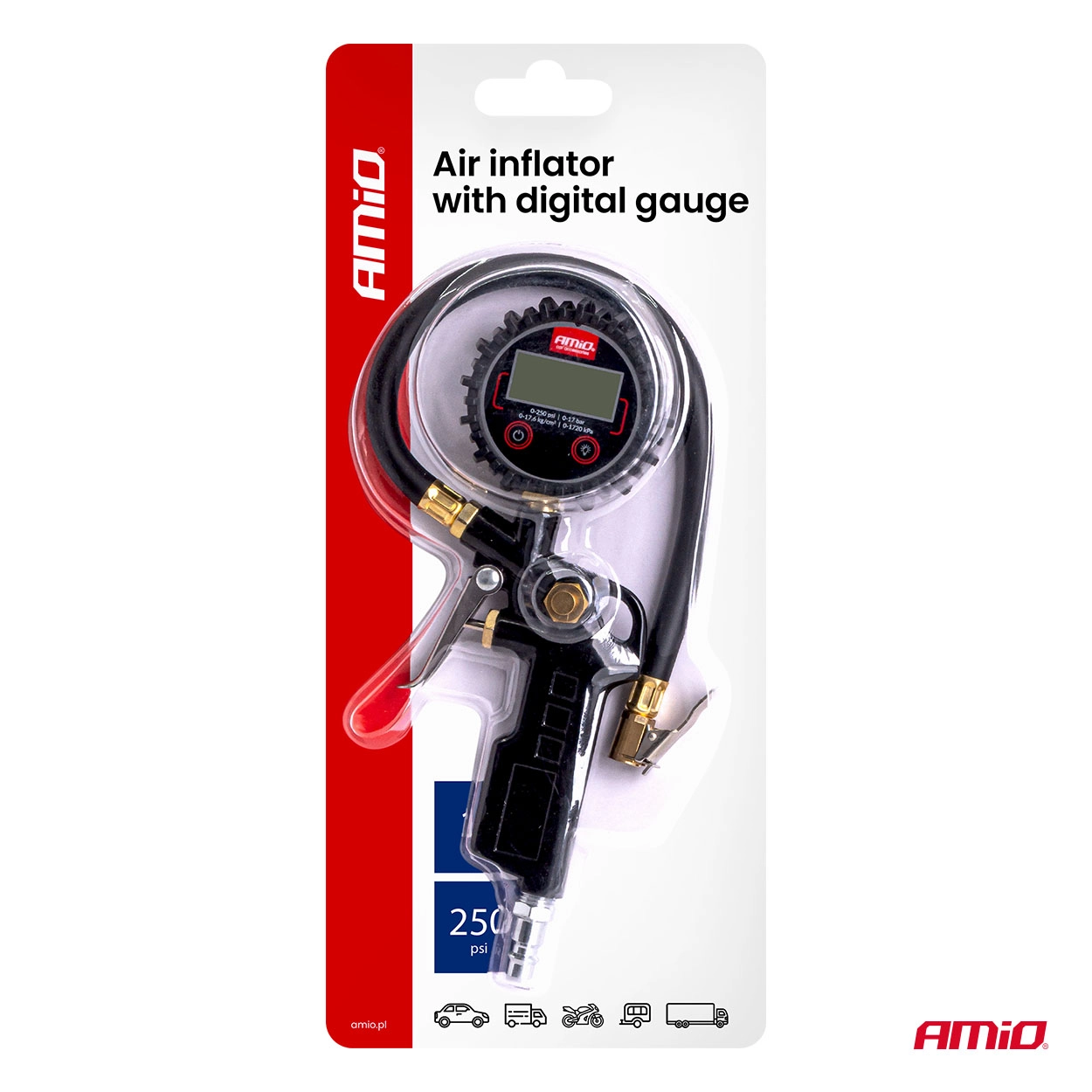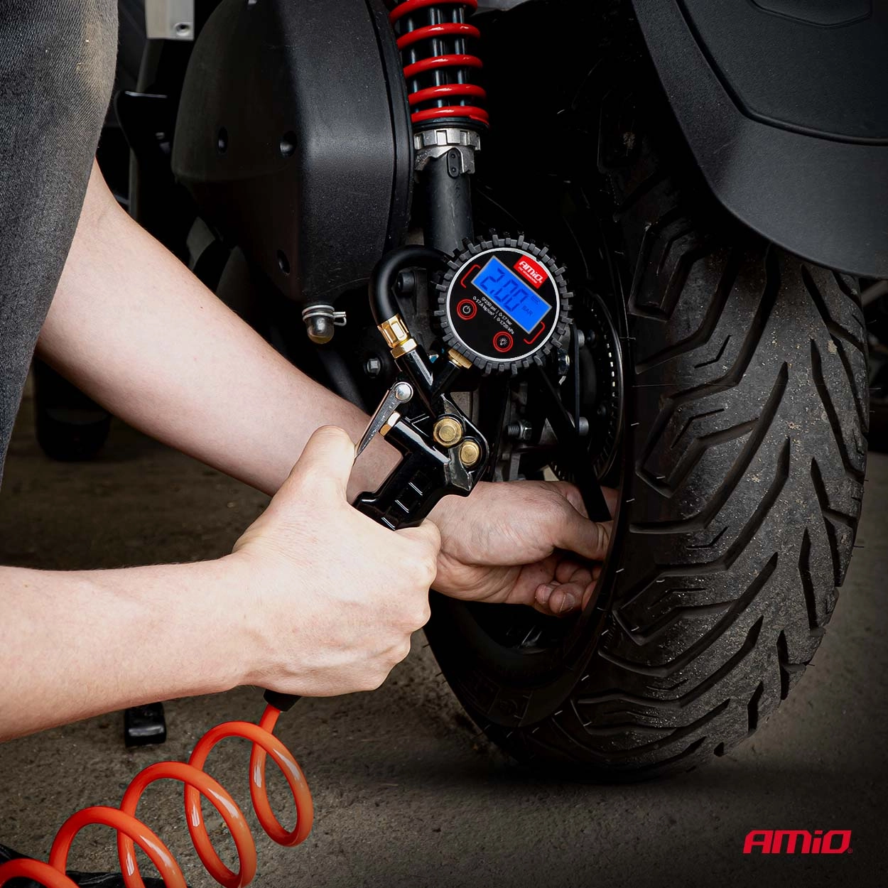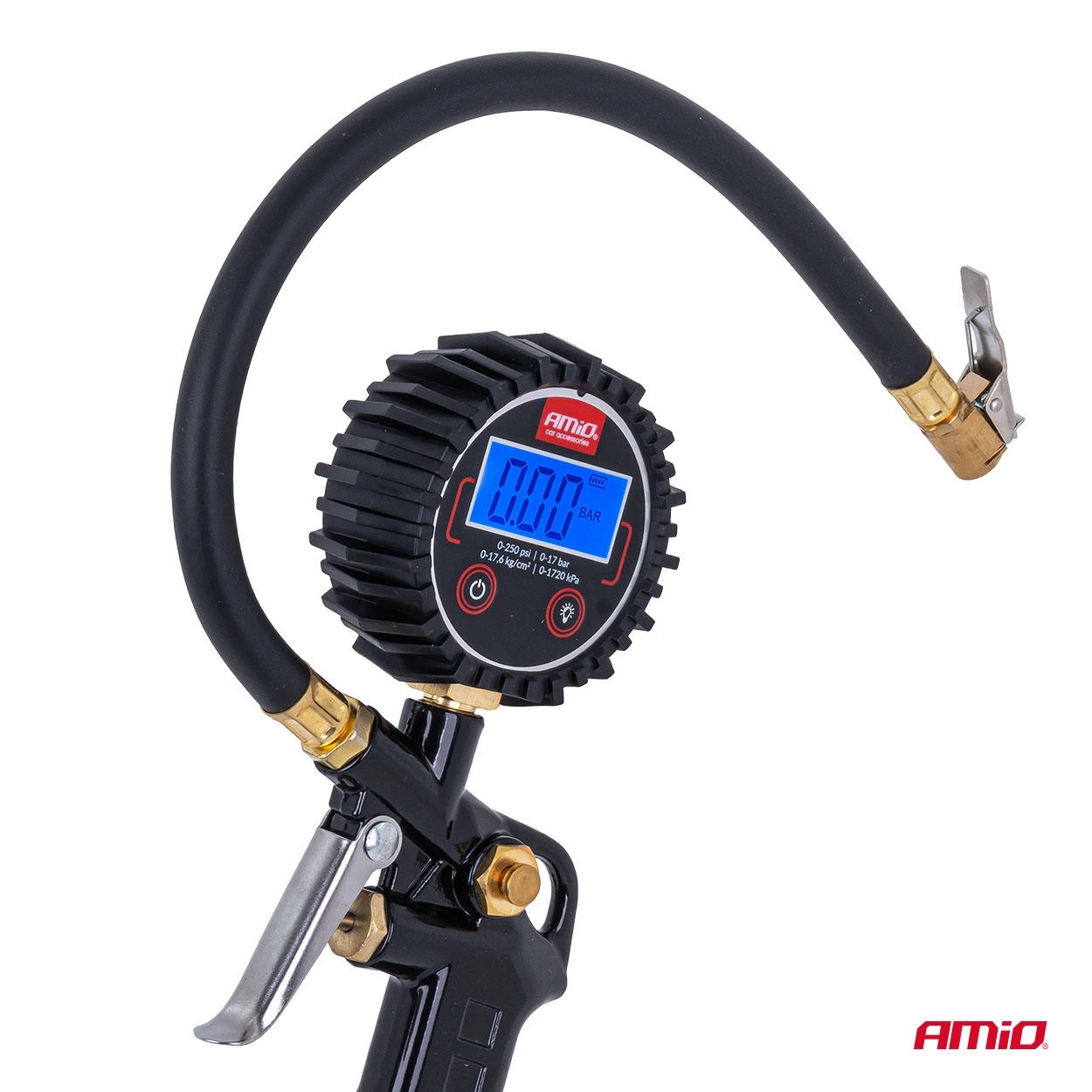Šis profesionalus padangų pripūtimo pistoletas su tiksliu skaitmeniniu manometru yra nepakeičiamas įrankis kiekvienose dirbtuvėse, padangų servise ir garaže. Jis leidžia greitai ir tiksliai išmatuoti bei sureguliuoti padangų slėgį iki 17 barų.