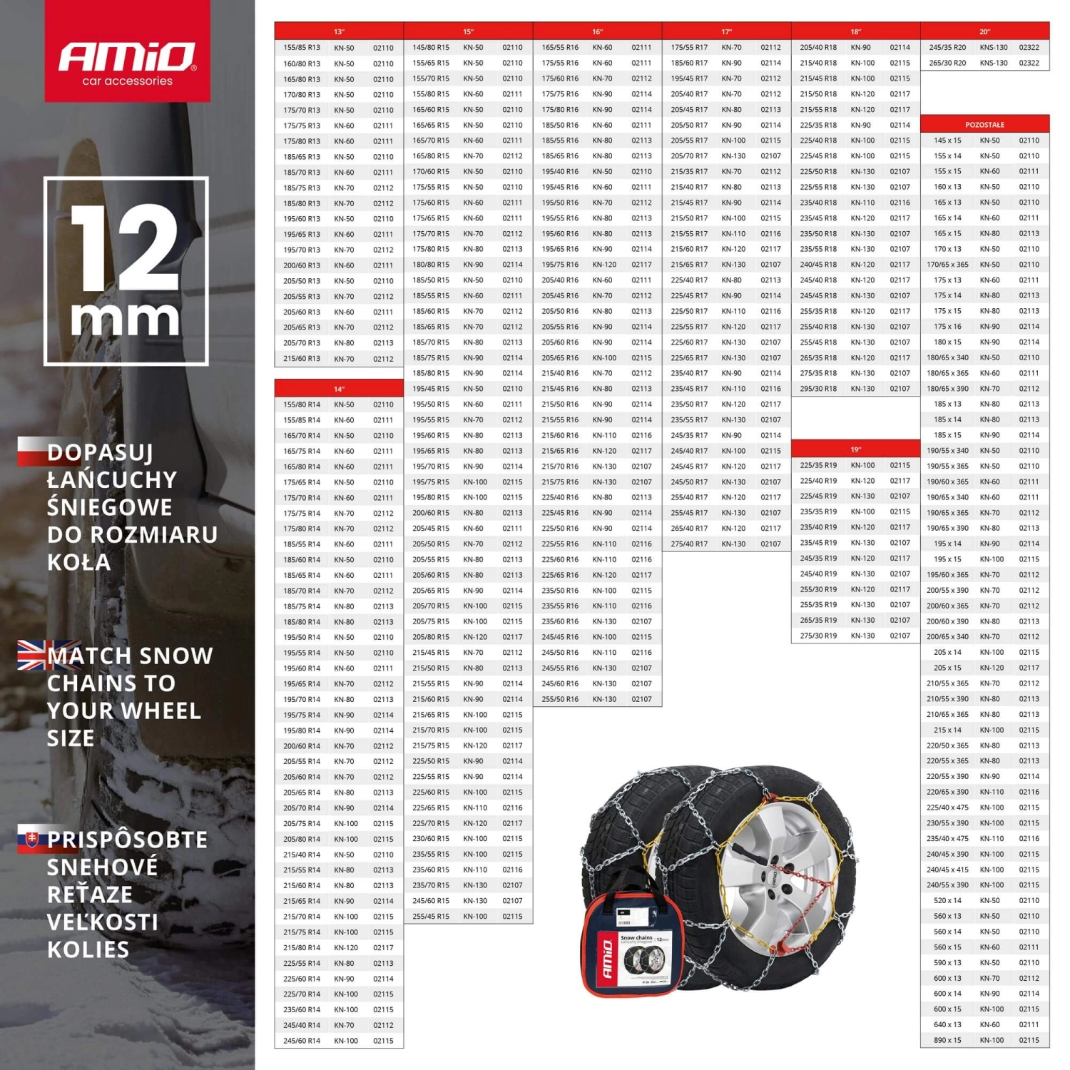 Galima naudoti abiejose priekinės ir galinės ašies pusėse, automobiliuose su ABS, ESP. Grandinės supakuotos į pakuotes. Komplekte yra dvi grandinės dviem varomiesiems ratams.
