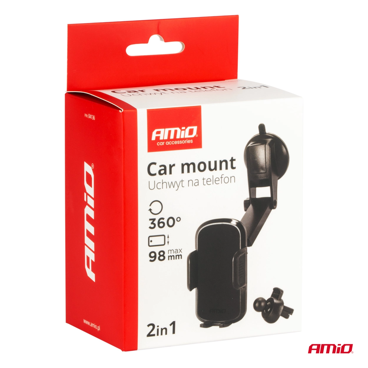 Laikiklį galima lengvai pritvirtinti prie daugumos jūsų automobilio elementų – nuo priekinio stiklo per prietaisų skydelį iki oro išleidimo angos.