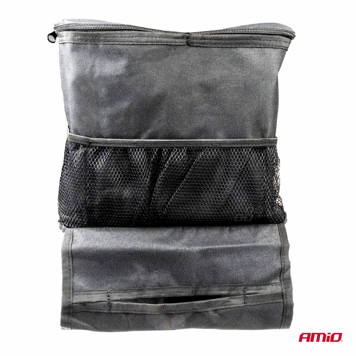 Termo maišelis užsegamas dvigubu užtrauktuku. Tvirtinimas prie galvos atramos dirželiu su užtrauktuku, kuris gali būti naudojamas ir kaip krepšio rankena.