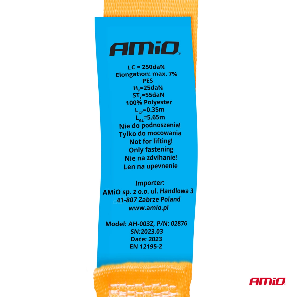 Amio tvirtinimo diržai yra skirti pritvirtinti krovinius priekabose, sunkvežimiuose ir pan. Aukščiausios kokybės poliesterio juosta yra atspari vandeniui bei trinčiai. Kablys yra pagamintas iš korozijai atsparių medžiagų. Šie diržai lengvai prisitaiko prie krovinio kontūro, neprarasdami tvirtumo. Amio gamina skirtingų ilgių, pločių ir maksimalaus leistino svorio tvirtinimo diržus. Šie diržai atitinka visus standartus ir yra sertifikuoti.
