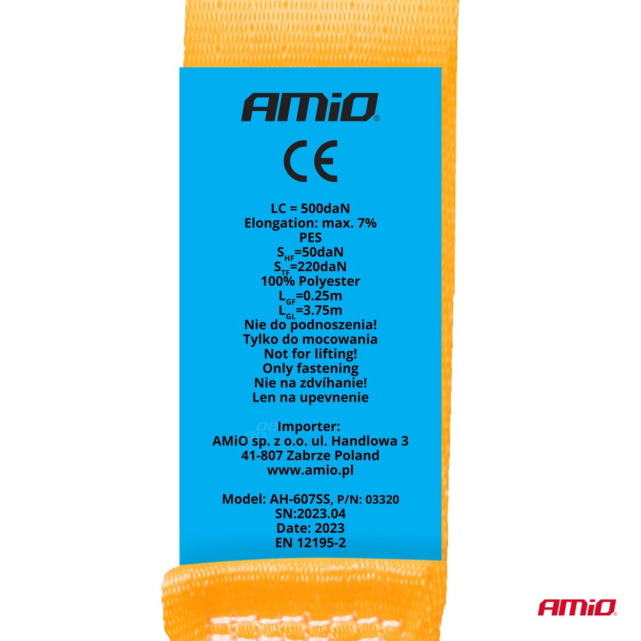 Amio tvirtinimo diržai yra skirti pritvirtinti krovinius priekabose, sunkvežimiuose ir pan. Aukščiausios kokybės poliesterio juosta yra atspari vandeniui bei trinčiai. Kablys yra pagamintas iš korozijai atsparių medžiagų. Šie diržai lengvai prisitaiko prie krovinio kontūro, neprarasdami tvirtumo. Amio gamina skirtingų ilgių, pločių ir maksimalaus leistino svorio tvirtinimo diržus. Šie diržai atitinka visus standartus ir yra sertifikuoti.